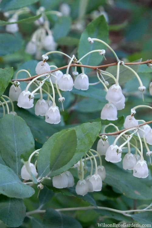 ‘Woodlander’s Blue’ Zenobia, also known as Honeycup or Dusty Zenobia, is an easy-to-grow rare but treasured North American native flowering shrub that shines in the landscape with its light, dusty blue-grey foliage. In late spring to early summer clusters of fragrant, bell-shaped, citrus-scented white flowers similar to those of Pieris dangle from the ends of arching stems on low shrubs 3 to 4 feet tall and maybe a little wider. The color show continues in fall when the foliage turns bright yellow and reddish-purple. A outstanding native that deserves a spot in every garden where it will grow!